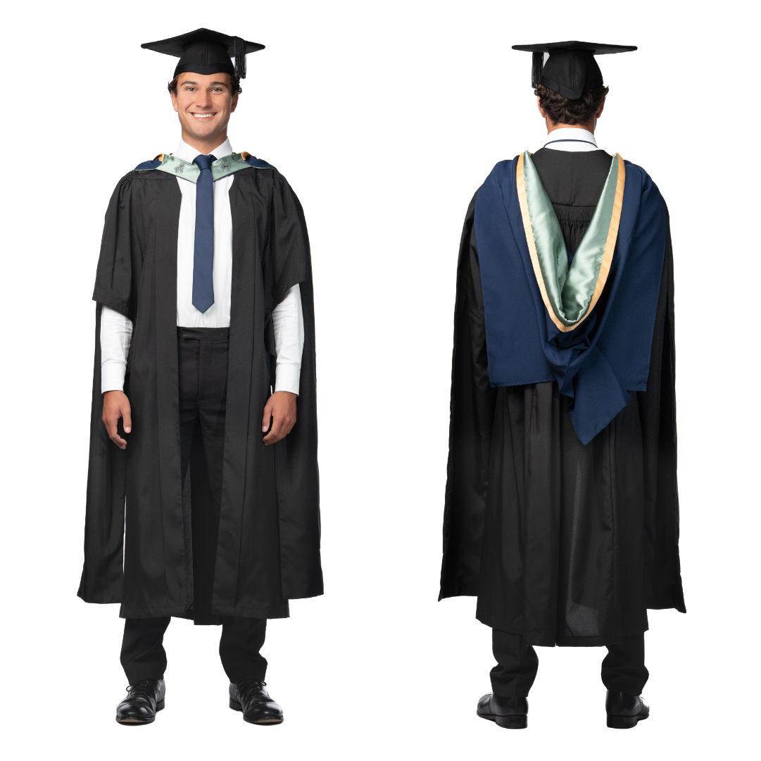 Navy Doctorates Gown with mint green sleeves and facings
